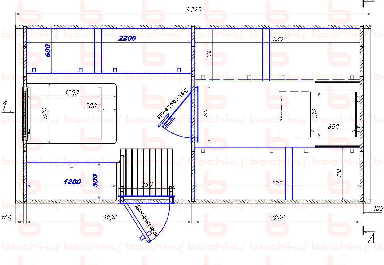 Длина раздевалки (внутренний размер)